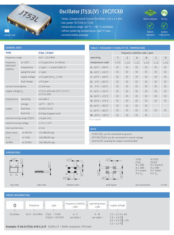 0 24.0-JT53L-Y-K-3.3-LF德國JAUCH溫補(bǔ)晶振5032 24M TCXO