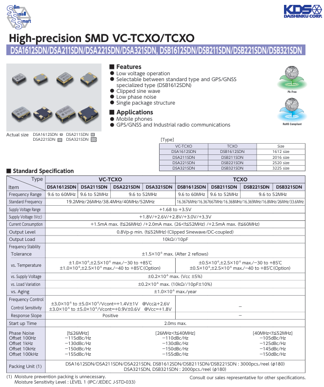 更多>>1XTW32768PAA DSB321SDN 32.768M KDS溫補晶振的科技含量